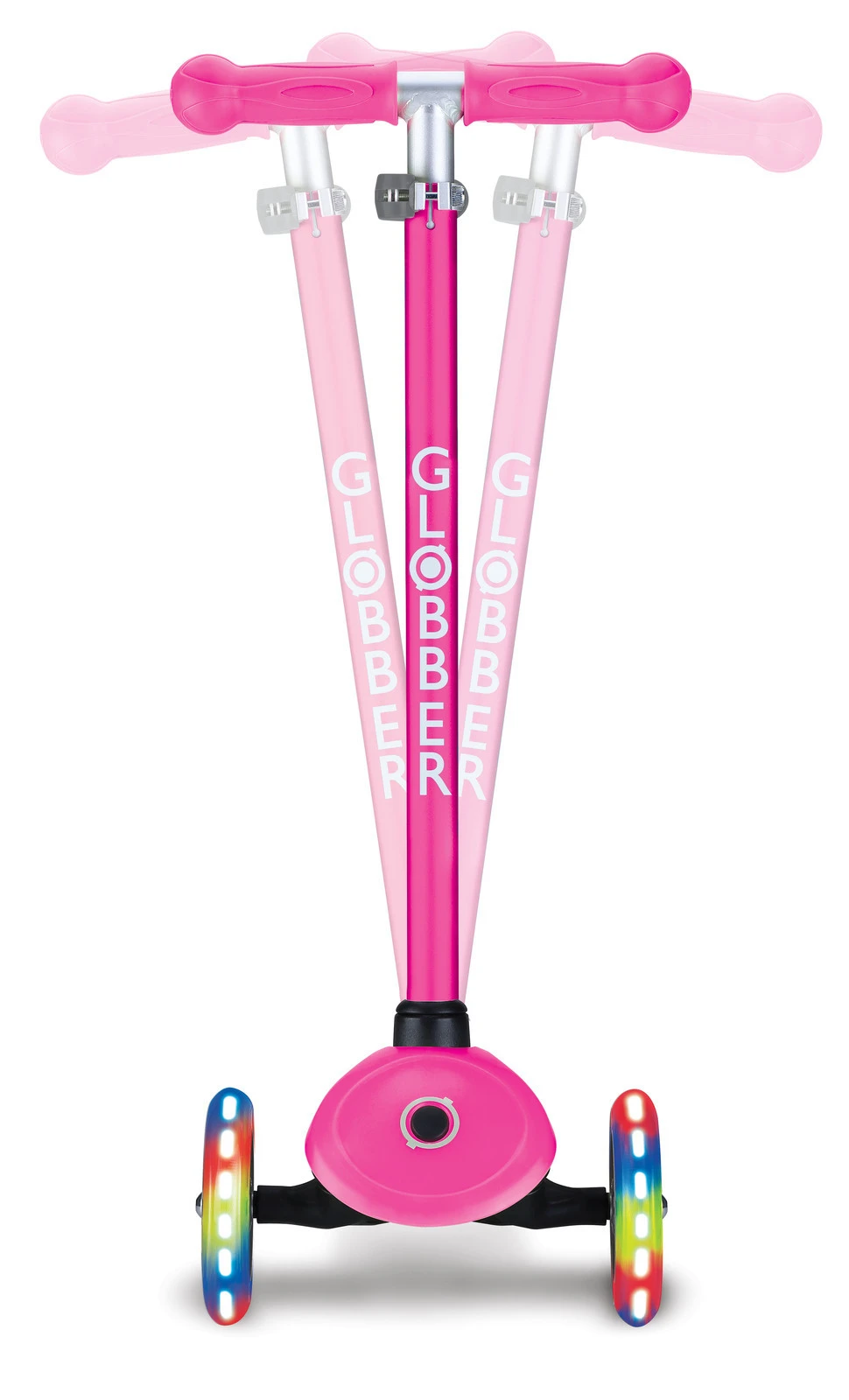 Globber Primo Lights Kids 3 Wheeled Push Scooter w/ Anodized TBar Neon Pink